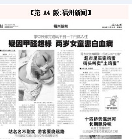 2014年11月30日,《福州晚報》上刊登了一篇題為《疑因甲醛超標(biāo) 兩歲女童患白血病》,讓社會的目光聚焦在這個不幸的家庭上。孩子患病的原因,家人表示懷疑與之前家里裝修后甲醛超標(biāo)有關(guān),在孩子未滿1歲時,曾給老家的房子裝修過一次,當(dāng)時住的房間都刷了油漆,有購買了新的電視柜、床頭柜等木漆家居。而當(dāng)時裝修完不到1個月就入住了,之后孩子就經(jīng)常發(fā)燒,但檢查也沒發(fā)現(xiàn)大問題,不曾想是裝修導(dǎo)致的。